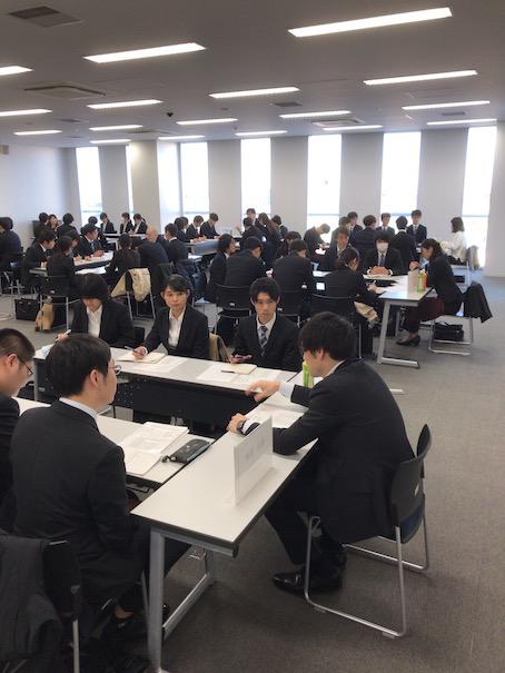 学科3年生の学生も普段着慣れないリクルートスーツを着て,自分で用意した名刺を手に様々な業種で活躍する先輩たちのもをと訪れ,就職活動の経験談に耳を傾けていました。