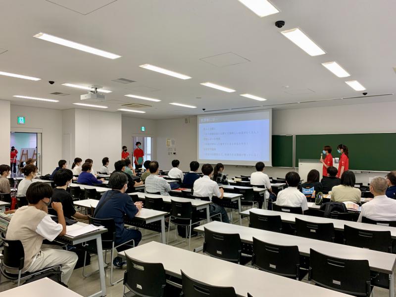 8月6日,7日の二日間,【対面型】としては3年ぶりとなる日本大学生産工学部オープンキャンパスが開催されました.応用分子化学科オープンキャンパスは2年生の司会で進行し,津野教授による応用分子化学科の学科紹介に続いて,3年生の学生生活紹介,4年生と大学院生による研究紹介が行われました.その後,高校生が学生と交流できる時間が設けられ,学生たちが様々な質問に対して自分の経験を踏まえて熱心に答えていました.