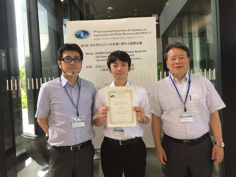平成29年8月8-11日に福岡大学(七隈キャンパス)で開催された The 5th international symposium & Exhibition on Aqua Science and Water Resources (ISASWR'17) (第5回水科学ならびに水資源に関する国際会議)において,博士前期課程2年の小柴侑輔君が優秀ポスター賞を受賞しました。